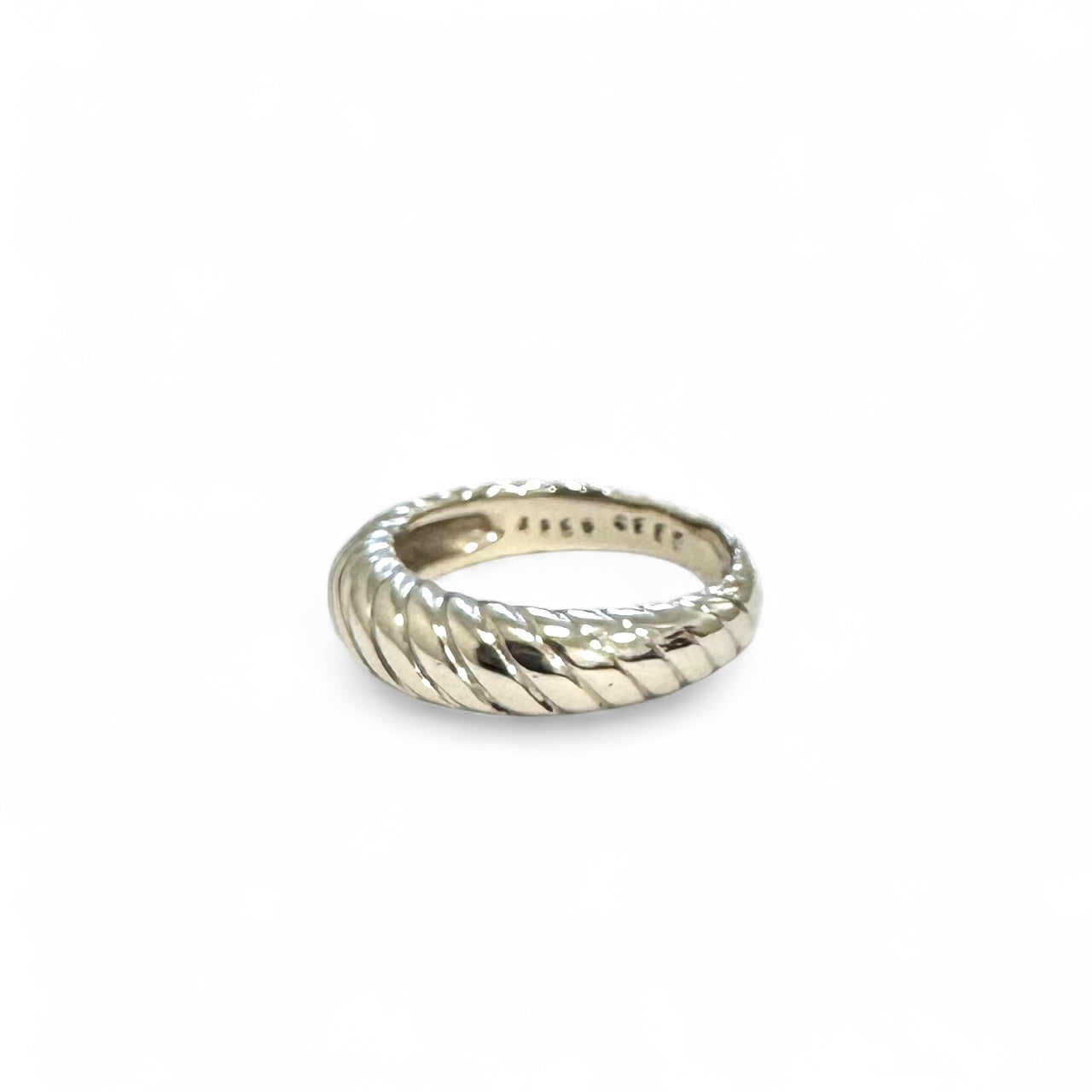 Anneau en or gris 18K travaillé en torsade, légèrement bombé.